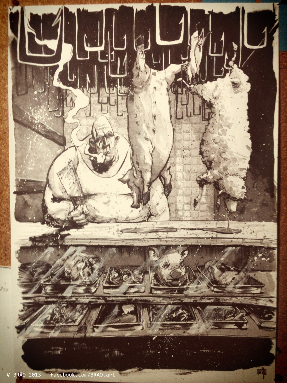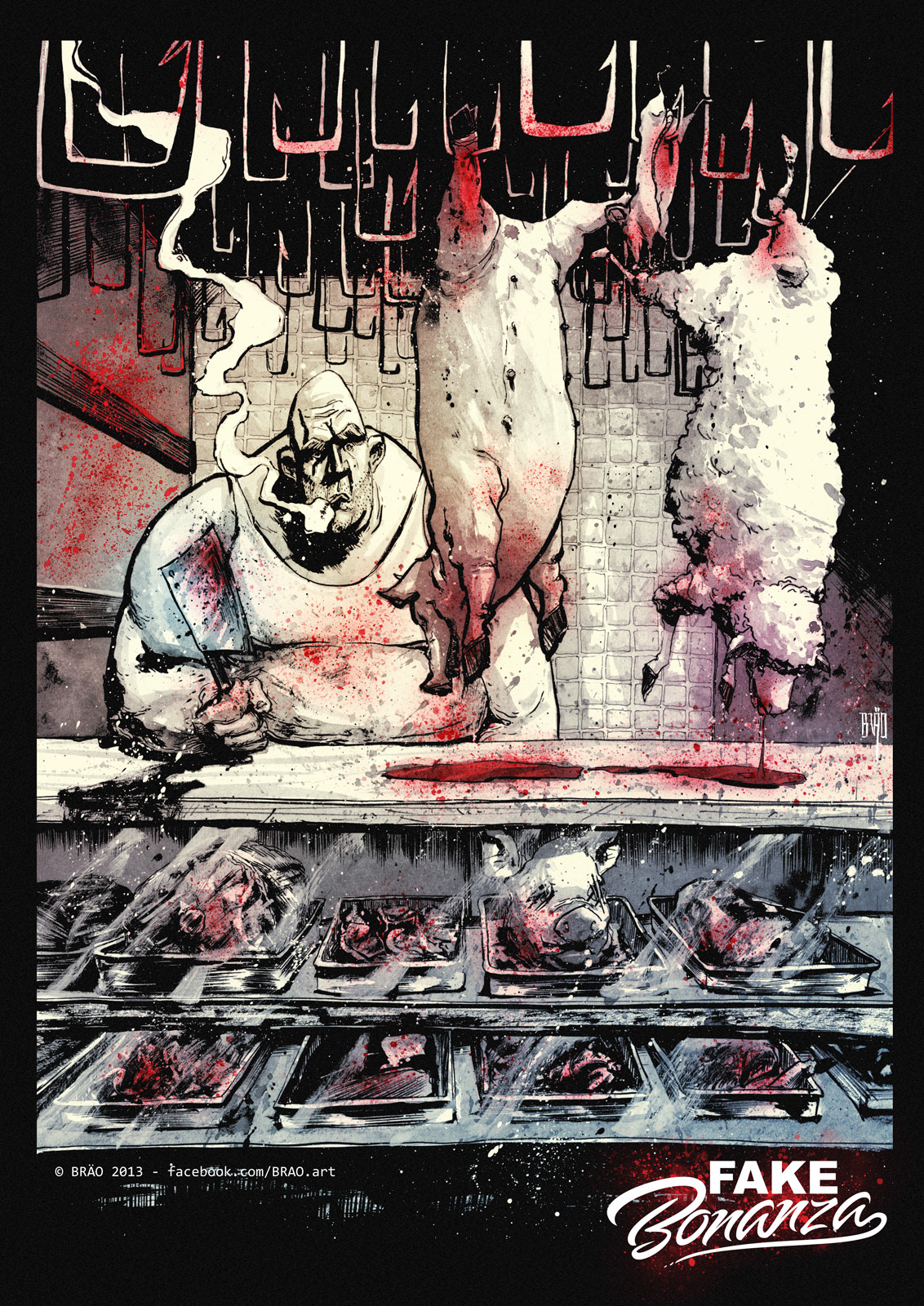 This was a commission for Fake Bonanza, a clothing store, which will be featured as one of their shirts. Really cool piece to work on. Very different from what I usually do and they had total faith in me that I could pull it off!