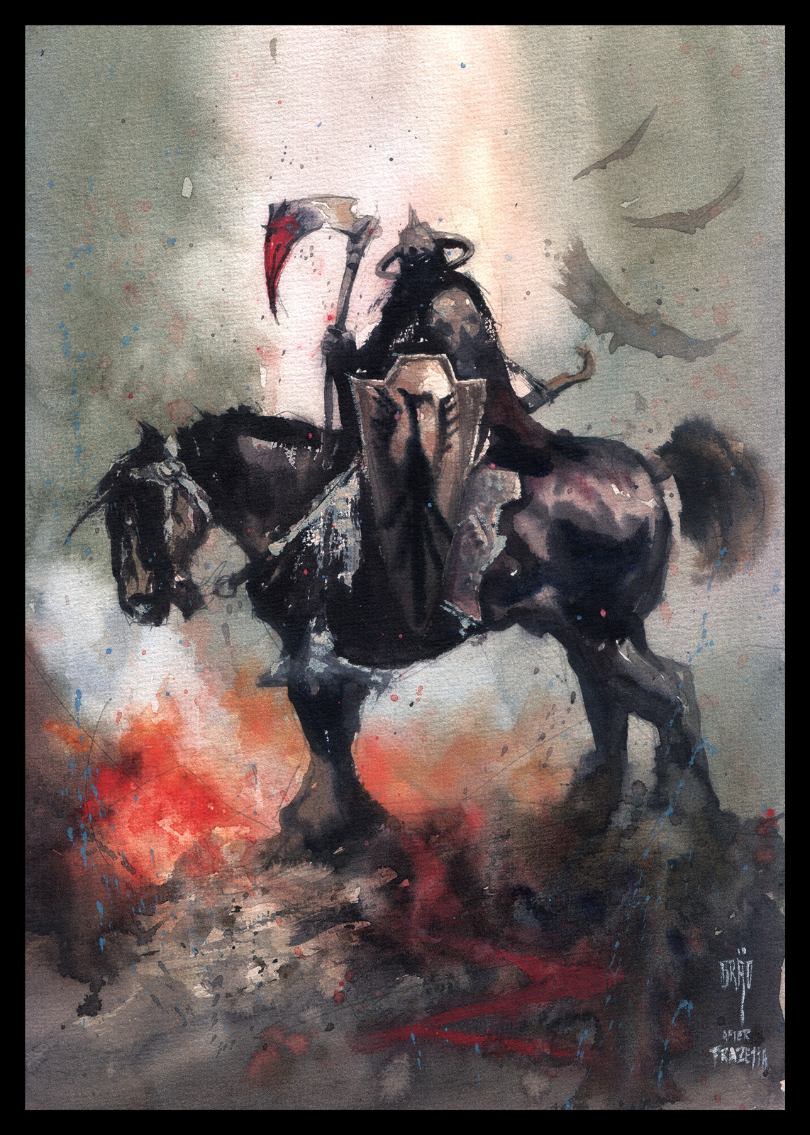 Fan art of Frazetta's Death Dealer in Watercolor.