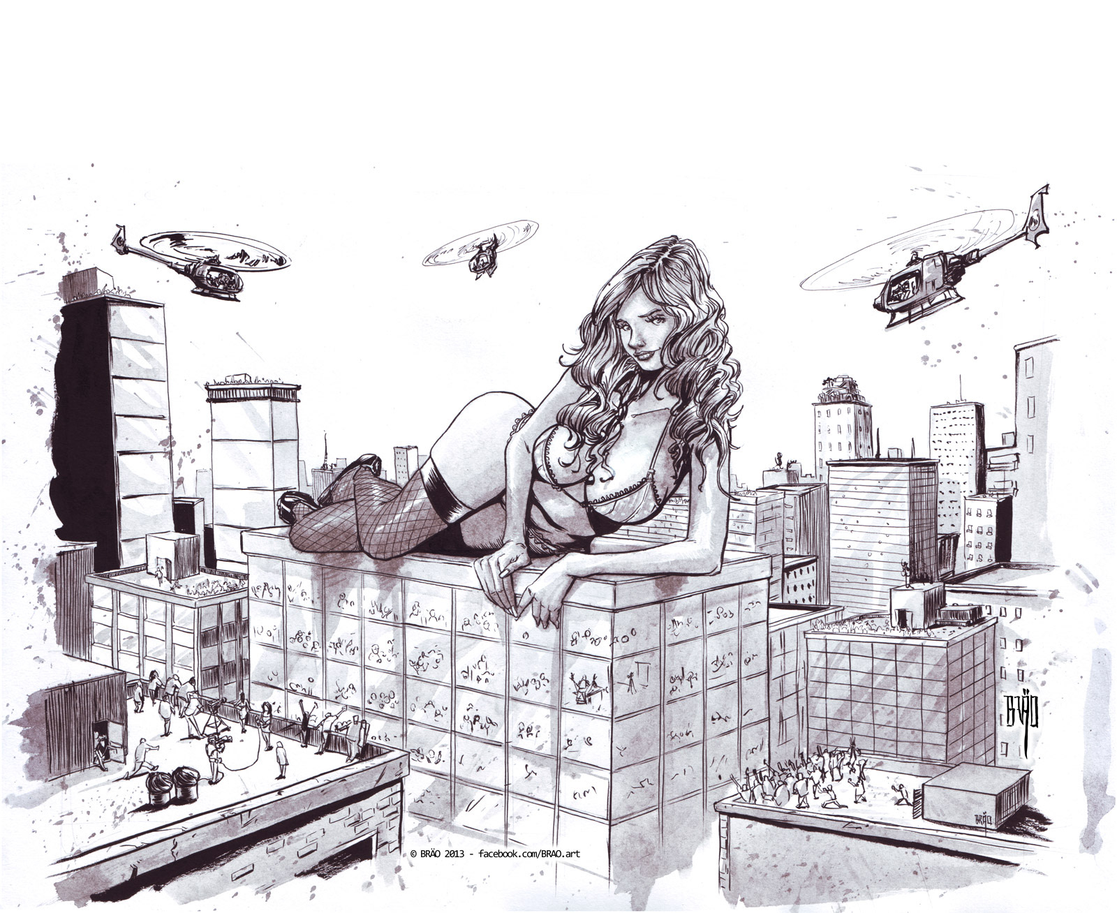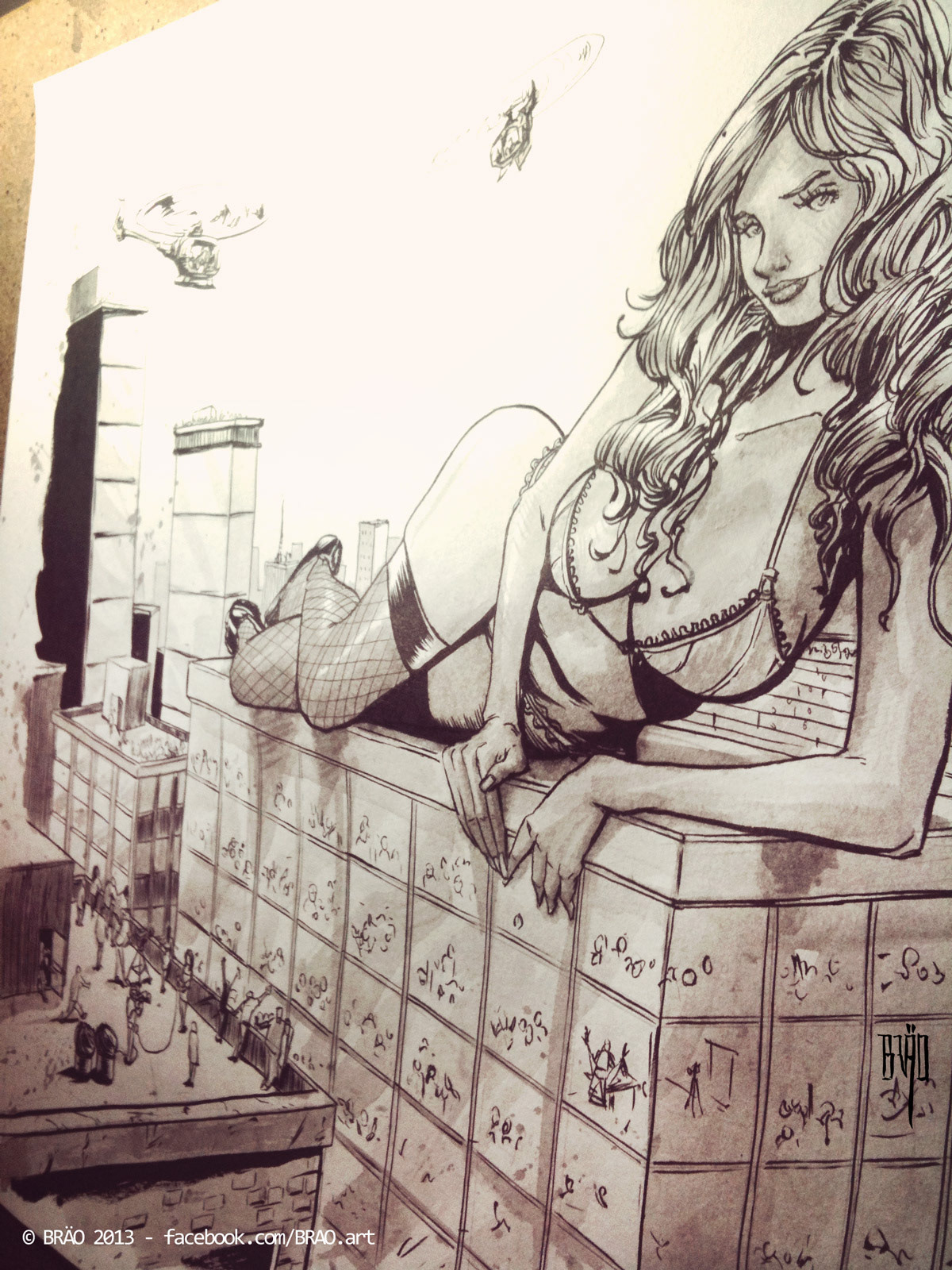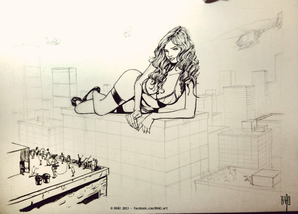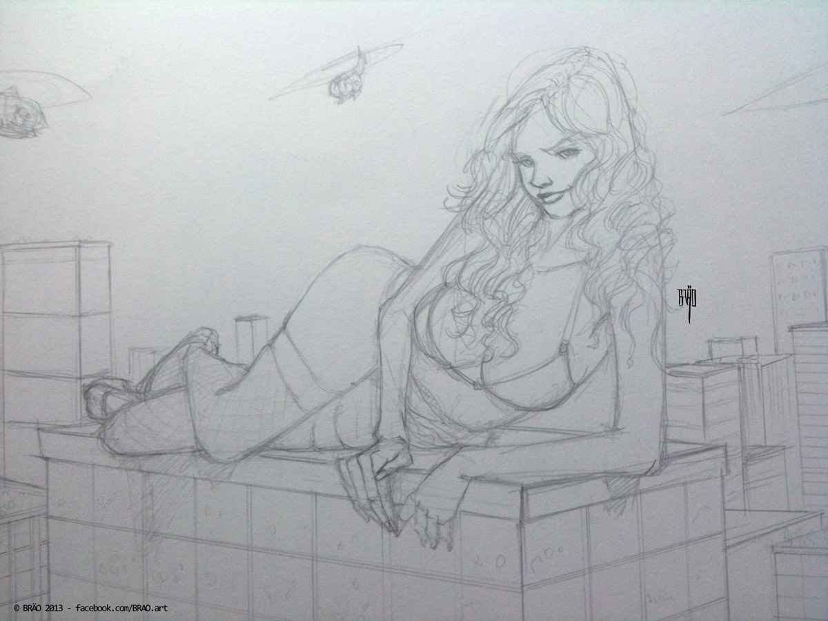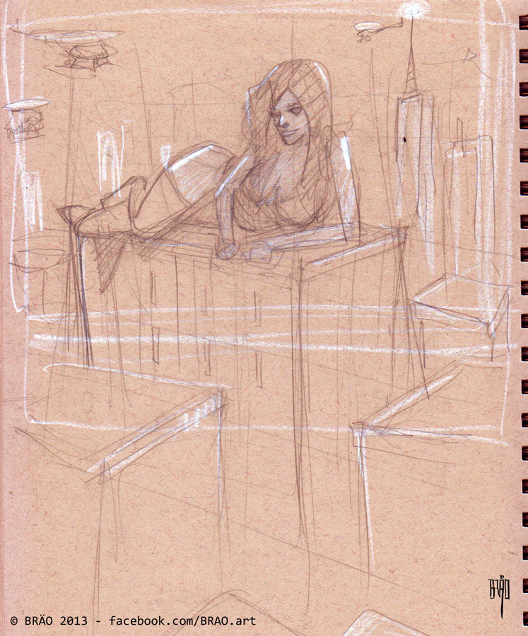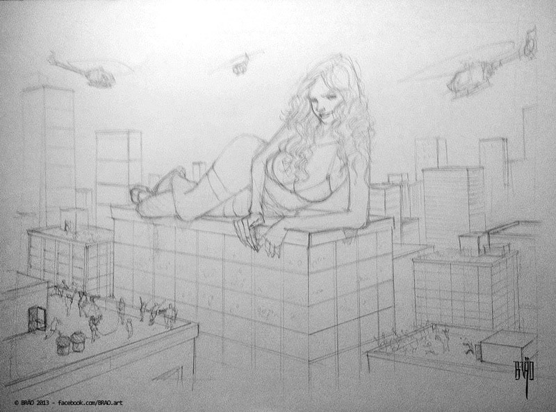 Original Sketch, laying down the idea, getting the perspective and composition