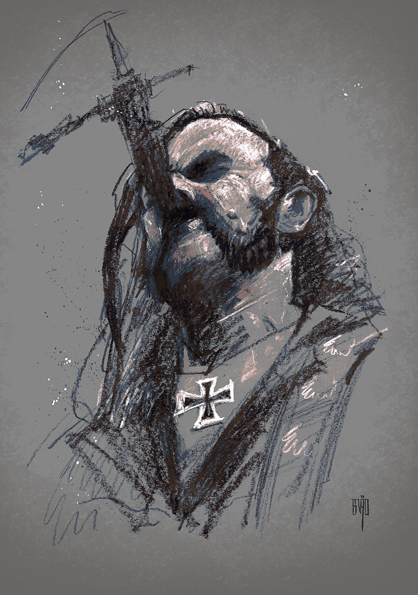 Done with pencils and pastels on gray paper. You can buy this print